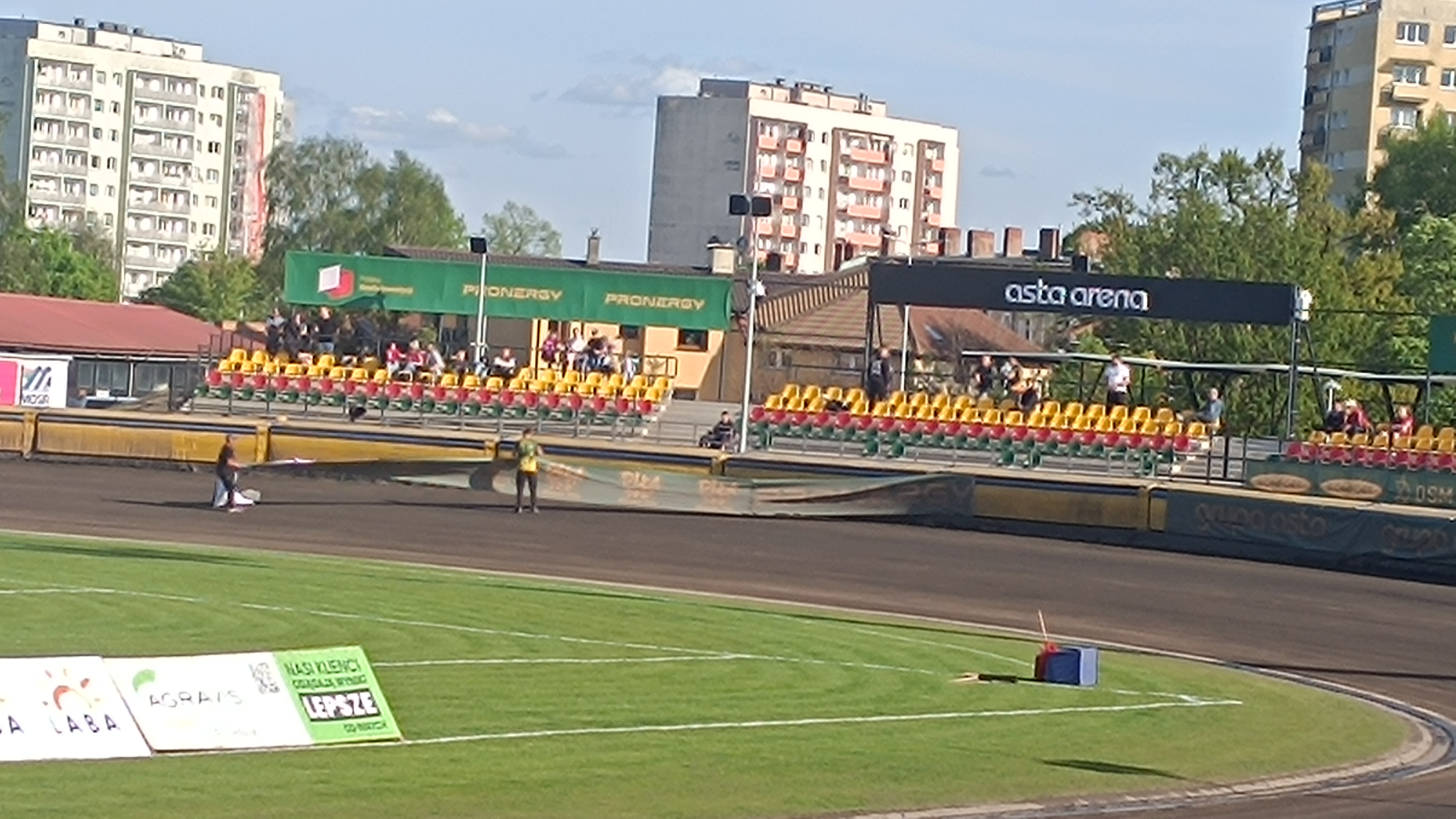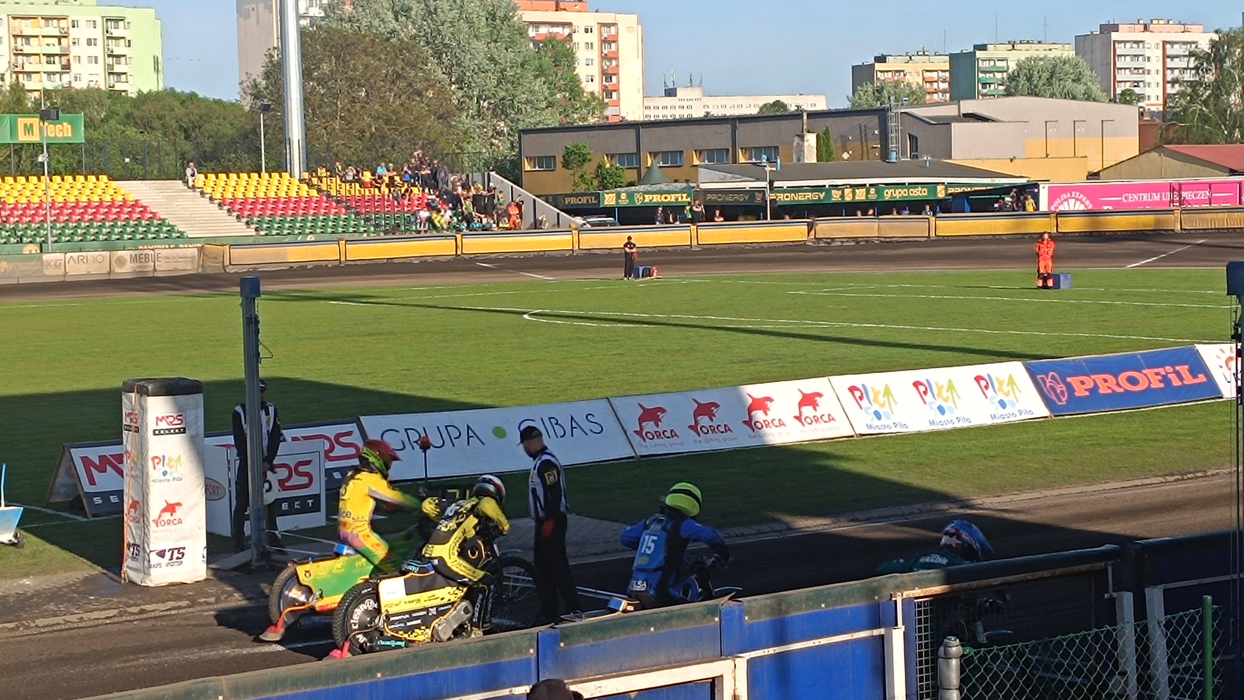 Jak informuje spiker - turniej w Pile opóźni się o około 30 minut. Na stadionie nie ma lekarza, który w drodze na stadion był świadkiem wypadku i udziela pomocy poszkodowanym.