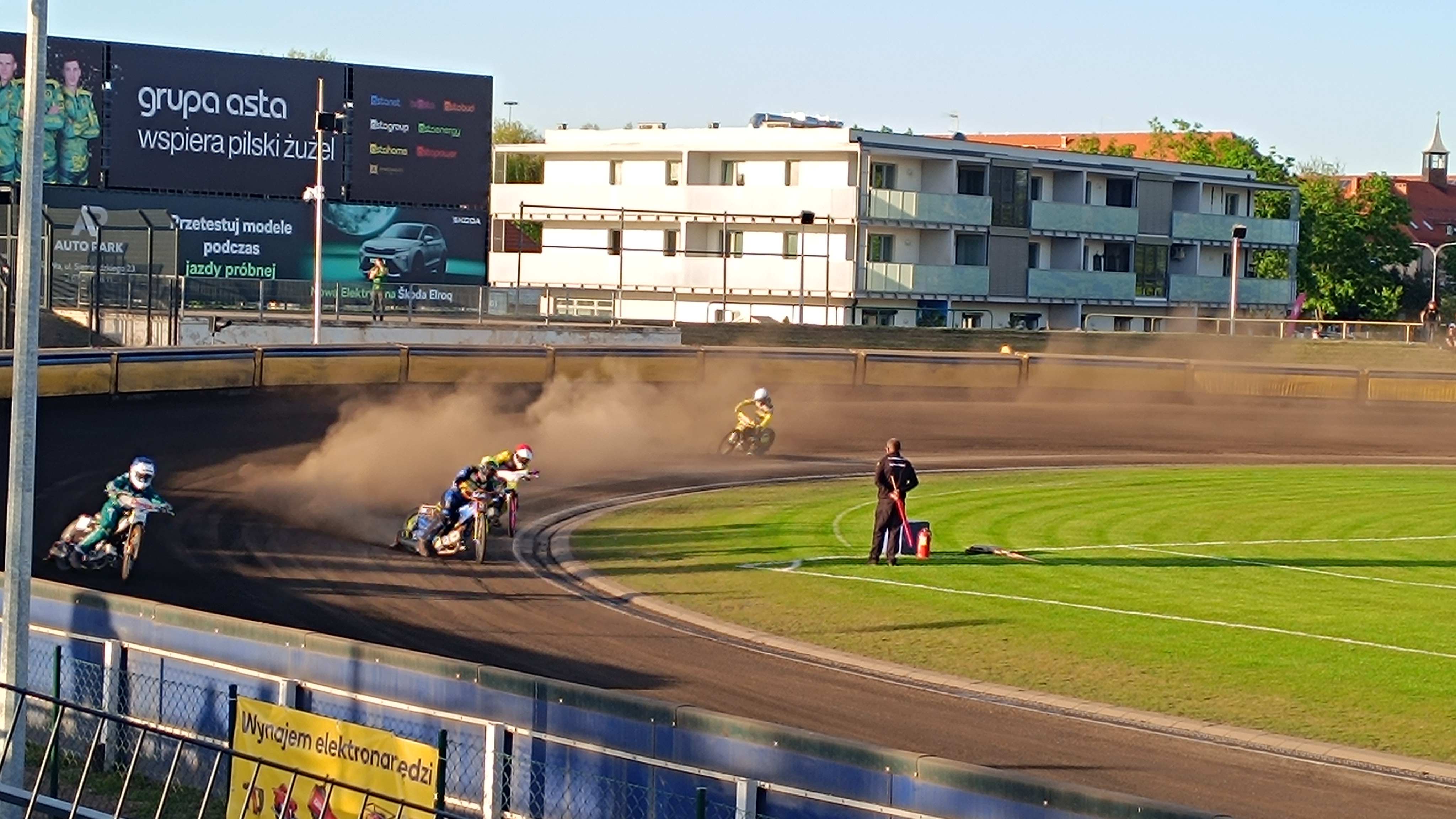 Tuż za nim na wejściu w drugi łuk pierwszego okrążenia obróciło Piotra Piotrowskiego-Prędkiego, a następnie postawiło również Kacpra Witrykusa. Obaj upadli, ale to junior Polonii jest wykluczony.