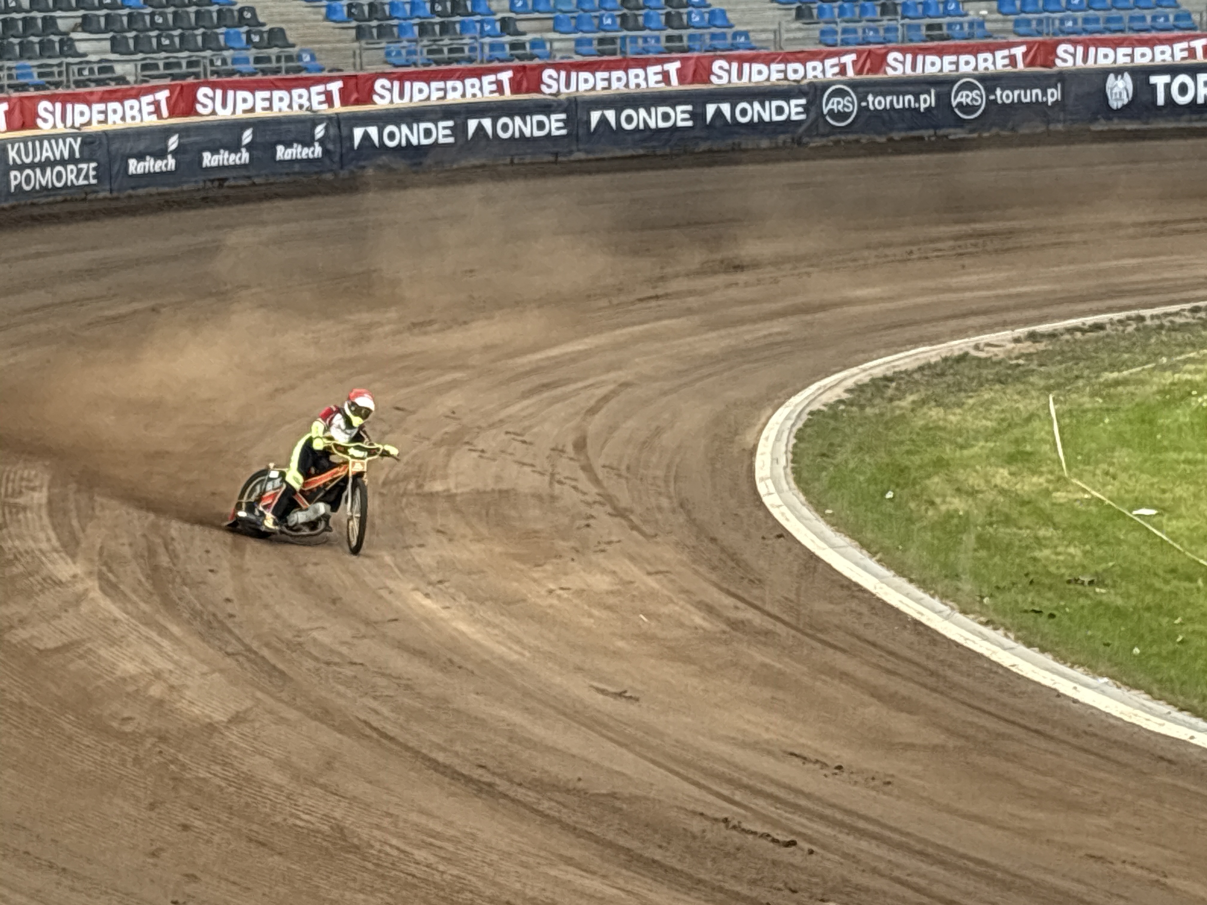 Szarpany start Klechy przez co rybniczanin jako ostatni wszedł w pierwszy łuk. Gigantyczna przewaga Kostery nad rywalami.