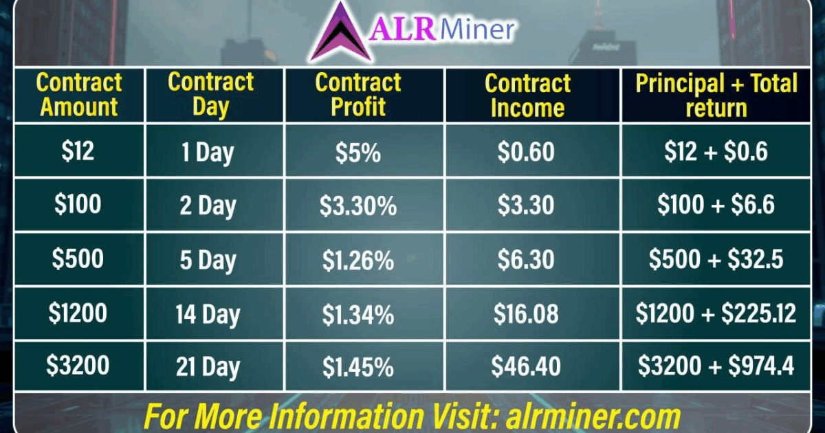 Użytkownicy, którzy szybko zarejestrują się na stronie internetowej lub w aplikacji ALR Miner, otrzymają premię rejestracyjną w wysokości 12 USD i będą mogli natychmiast rozpocząć wydobywanie kryptowaluty.