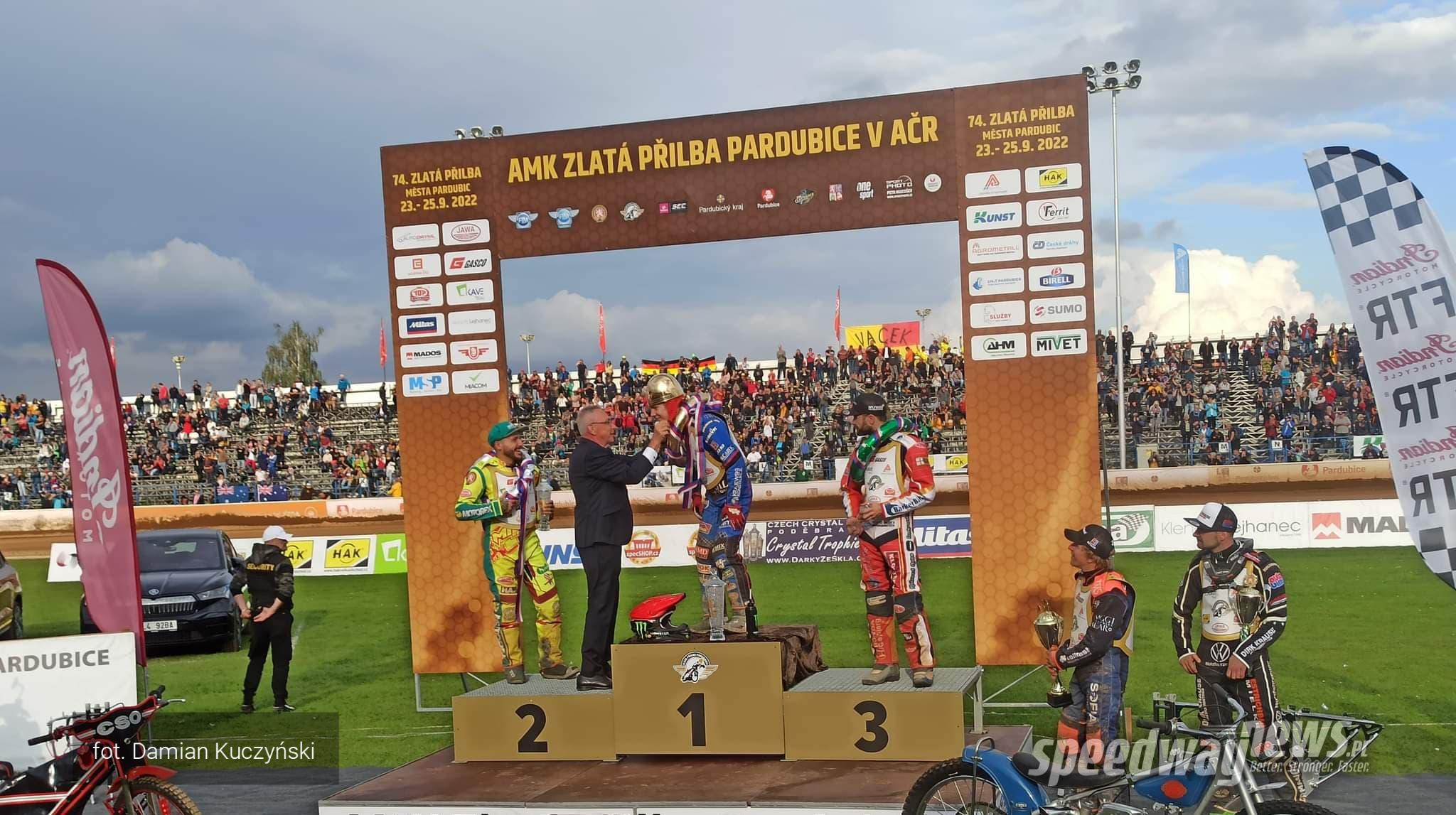 TVP Sport przygotowała prawdziwą gratkę dla najzagorzalszych fanów speedwaya. W niedzielę 21 września od godziny 12:00 pokaże rywalizację o Zlatą Prilbę, legendarnego już turnieju rozgrywanego w Pardubicach, którego korzenie sięgają już roku 1929. W 36-osobowej stawce nie zabraknie zawodników z cyklu Grand Prix – między innymi Jasona Doyle’a, Andersa Thomsena czy Andrzeja Lebiediewa. Na liście startowej znalazło się też miejsce dla trzech biało-czerwonych – Jakuba Jamroga, Roberta Chmiela oraz Przemysława Pawlickiego. Oprócz nich kilku zawodników zaprezentuje się też dwa dni wcześniej podczas ostatniej rundy cyklu SEC. Poza wspomnianymi Pawlickim i Lebiediewem są to Timo Lahti, Norick Blodorn, Tom Brennan oraz Dimitri Berge.