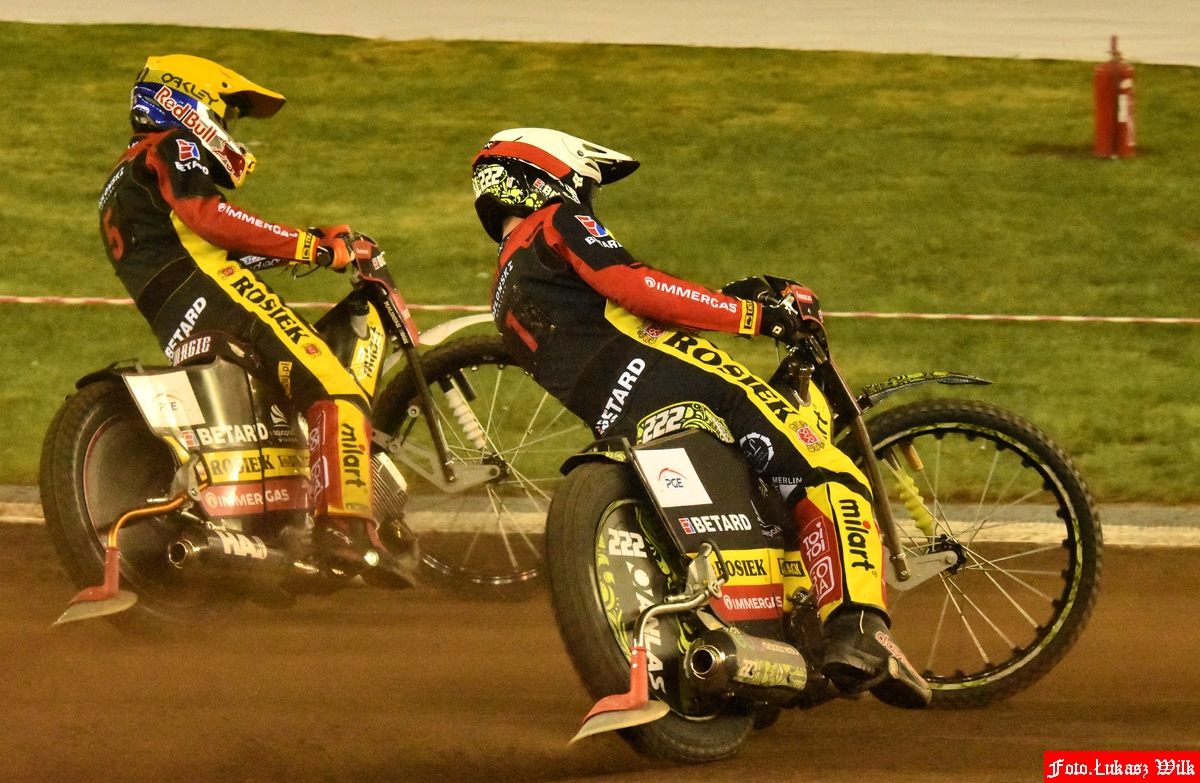 Radość nie trwała długo, bo Bewley i Łaguta wygrali podwójnie, ale już po chwili ponownie wiwatowali miejscowi. Pomogła w tym podwójna rezerwa taktyczna, w ramach której Jepsen Jensen w 13. wyścigu zastąpił Lidsey’a, a Miśkowiak Tarasienkę. Chwilę wcześniej Kevin Małkiewicz po dwóch wykluczeniach przywiózł za sobą Macieja Janowskiego. Strata gospodarzy przed biegami nominowanymi wynosiła zaledwie cztery punkty, a GKM Grudziądz ponownie uwierzył w meczowy triumf.
