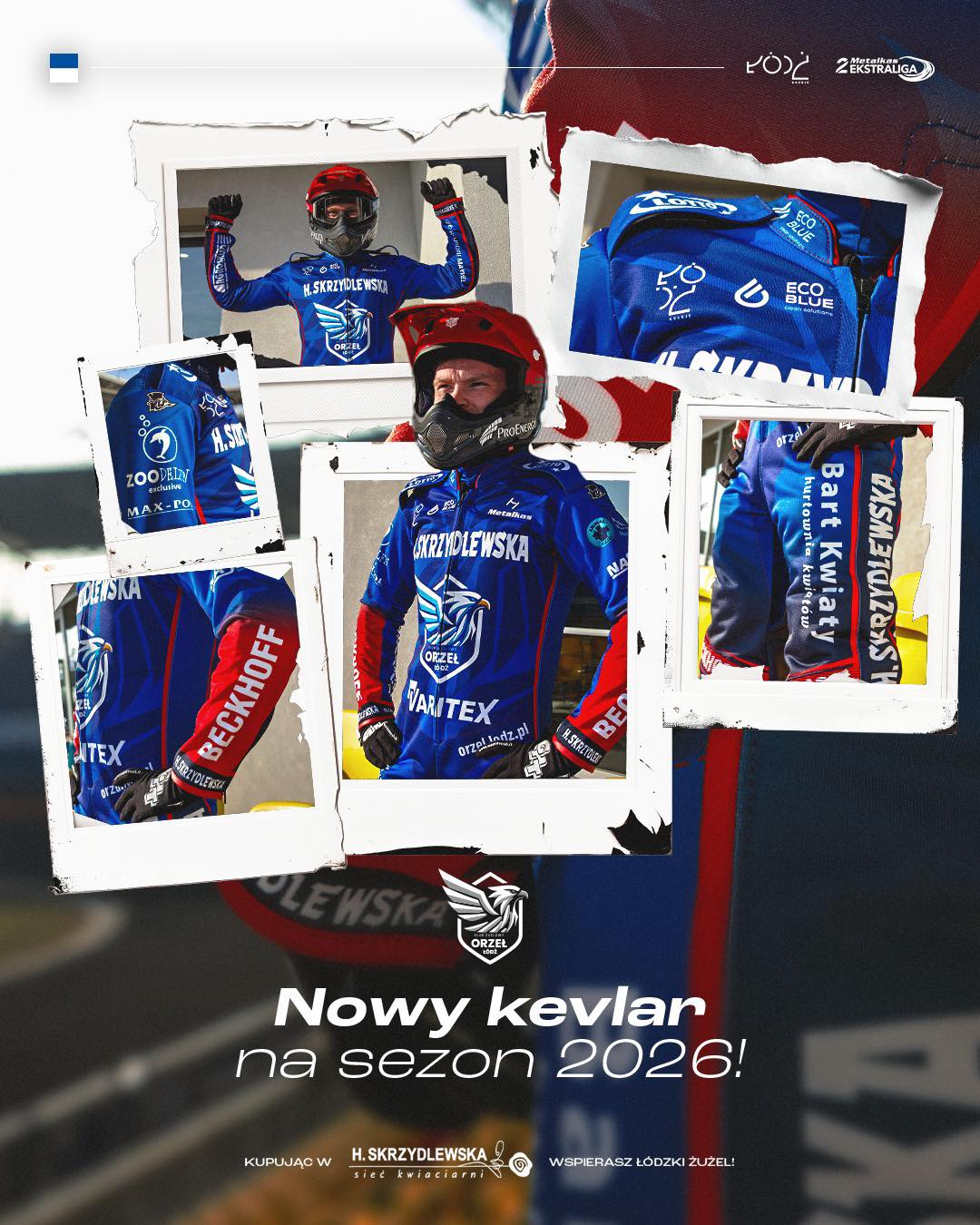 Łódzki klub przedstawił fanom w mediach społecznościowych wzór swoich tegorocznych kombinezonów. Orzeł nie zdecydował się na rewolucję względem zeszłego roku. Warto jednak wskazać, że można na kevlarze dostrzec kilka nowych rzeczy. Przede wszystkim pojawiły się loga firmy Beckhoff, która została również dzisiaj ogłoszona jako jeden z nowych sponsorów łódzkiej ekipy. Ponadto poza niebieskim pojawiły się czerwone detale, co również może być nawiązaniem do nowej współpracy sponsorskiej klubu z Łodzi.