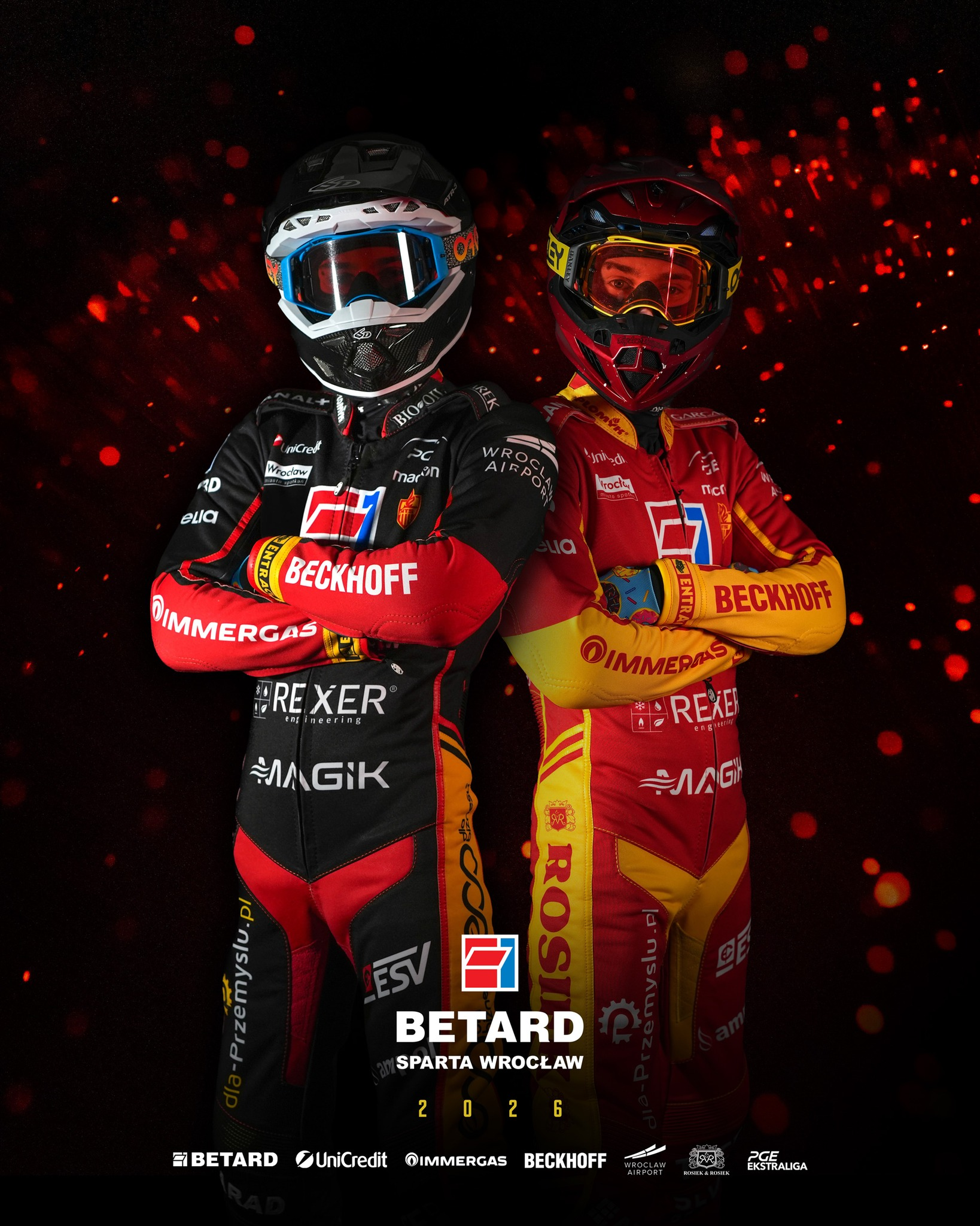Oczywiście kluczową kwestią było stworzenie drugiego kompletu. Betard Sparta zdecydowała się wykonać go w charakterystyce swojego drugiego macierzystego koloru – czerwieni. Odpowiednio nastrojony „kevlar” wygląda naprawdę imponująco, porywając przy tym kibiców z całego żużlowego środowiska. Czerwone elementy na ciemnym stroju zamieniono na żółty, co idealnie komponuje się z całym kształtem.